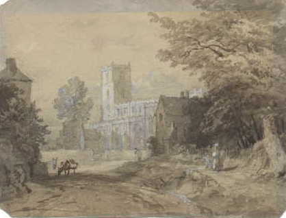 Watercolour, in sepia, white and pencil on card, size approx. 6" x 8", corners snipped. Titled in pencil, and signed, in ink, to verso.
